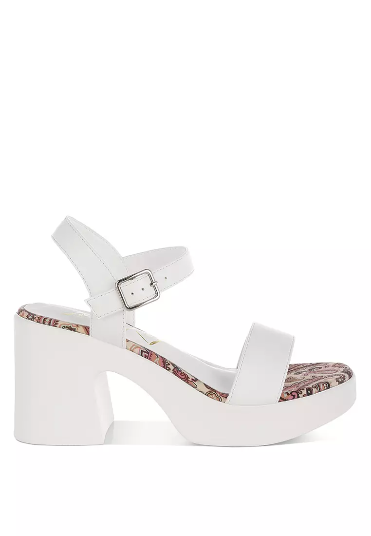 Sepatu hak platform gesper pin kulit imitasi warna putih