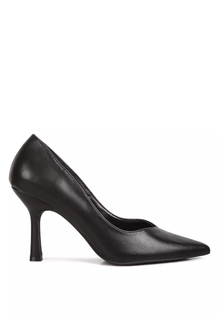 Sepatu hak stiletto berujung runcing berwarna hitam