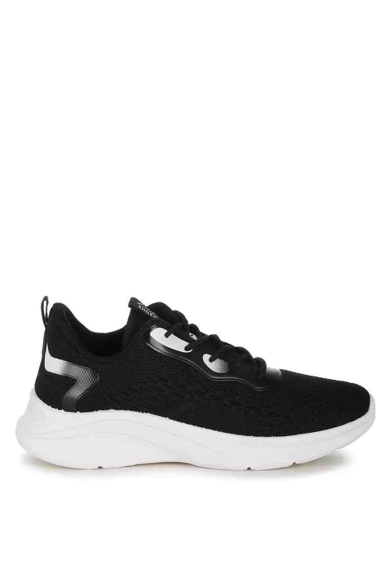 Sepatu Kets Bertali Detail Kontras Warna Hitam