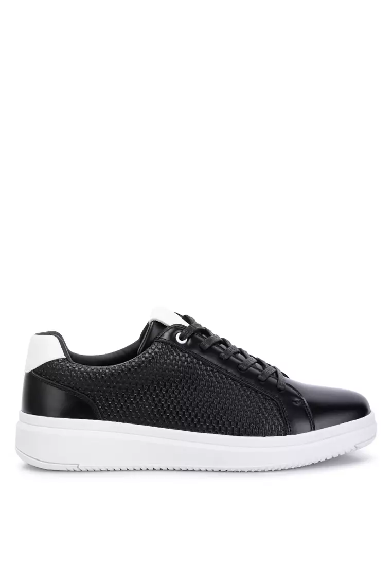 Sepatu Kets Bertali Kulit Imitasi Pria Warna Hitam
