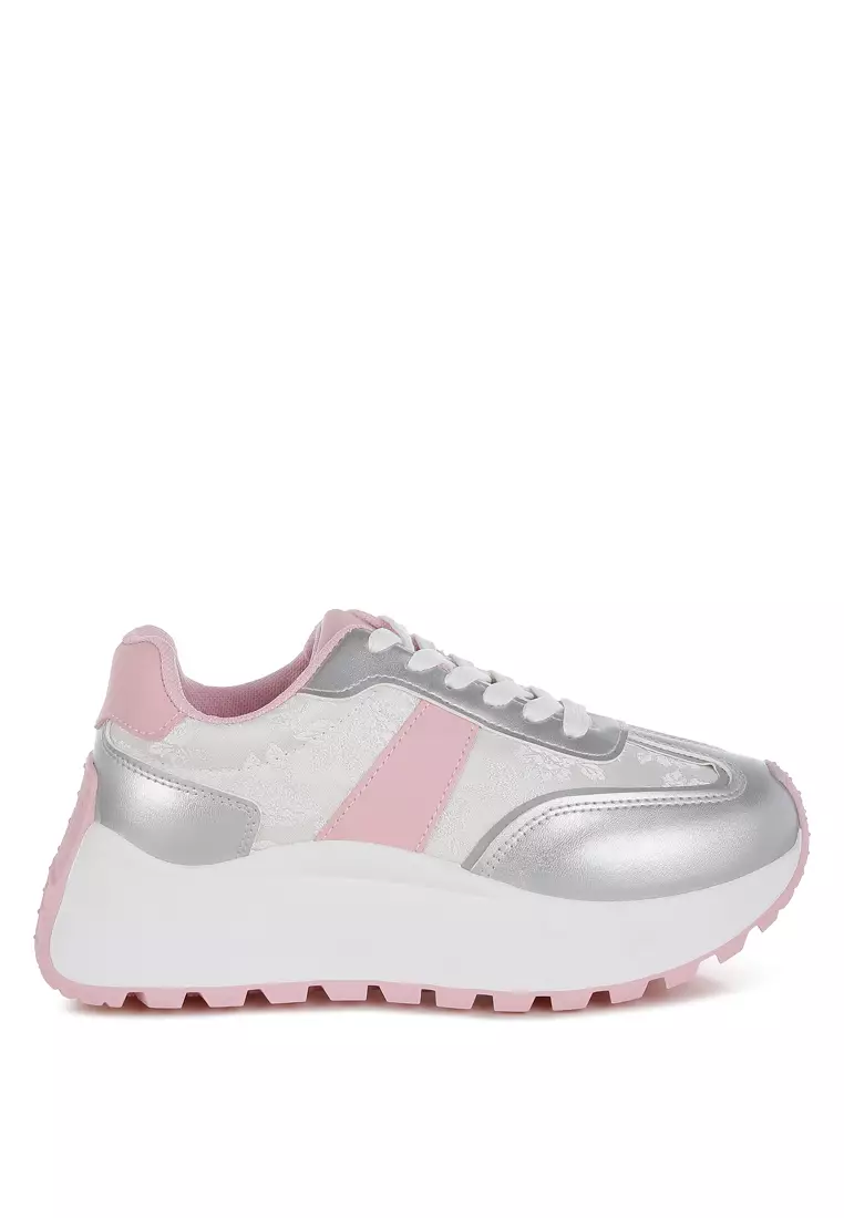 London RagSepatu Kets Metalik Detail Bordir Cetak dalam Warna Silver & Pink2472709.00