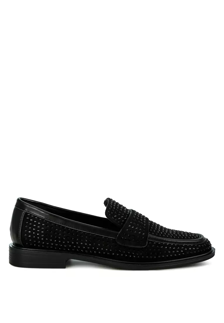 Sepatu Loafer Berhias Berlian Imitasi Hitam