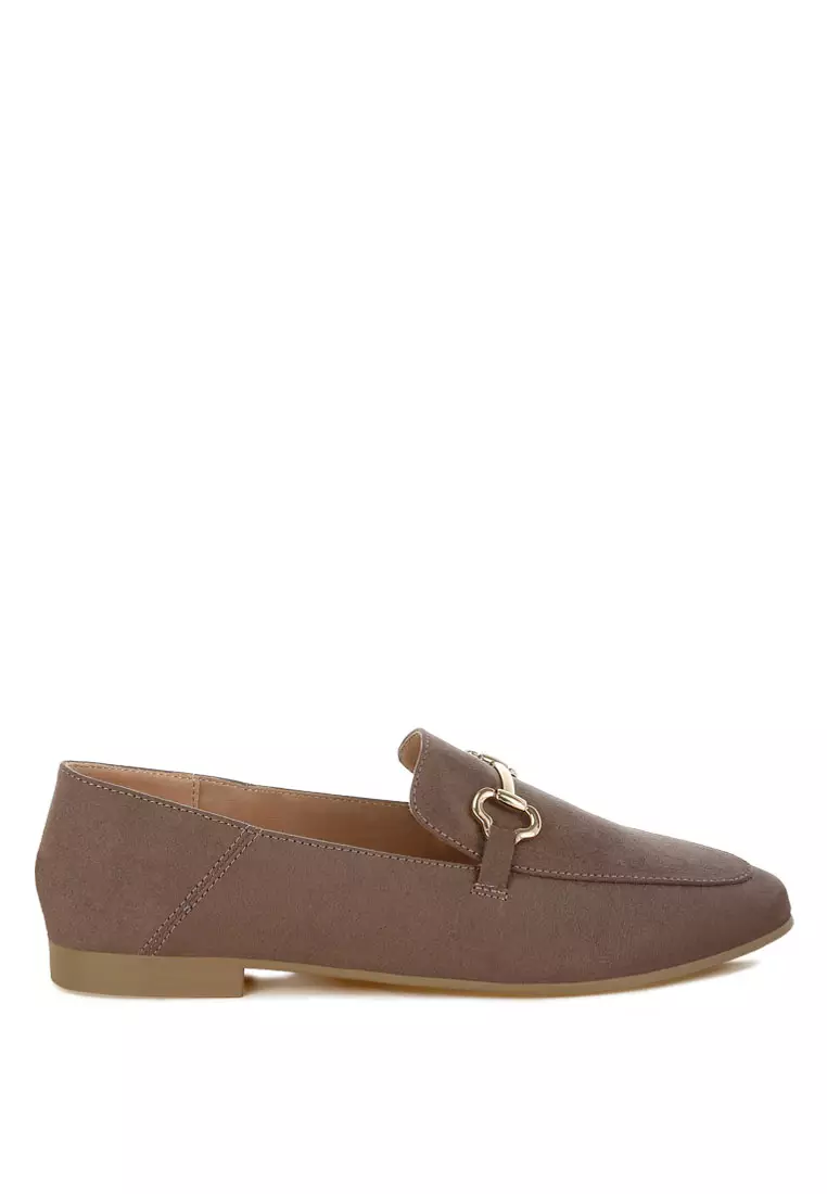 Sepatu Loafer Datar Hias Horsebit dalam Warna Taupe