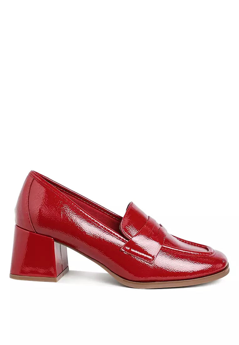 Sepatu Loafer Hak Blok Tali Penny dalam Warna Burgundy