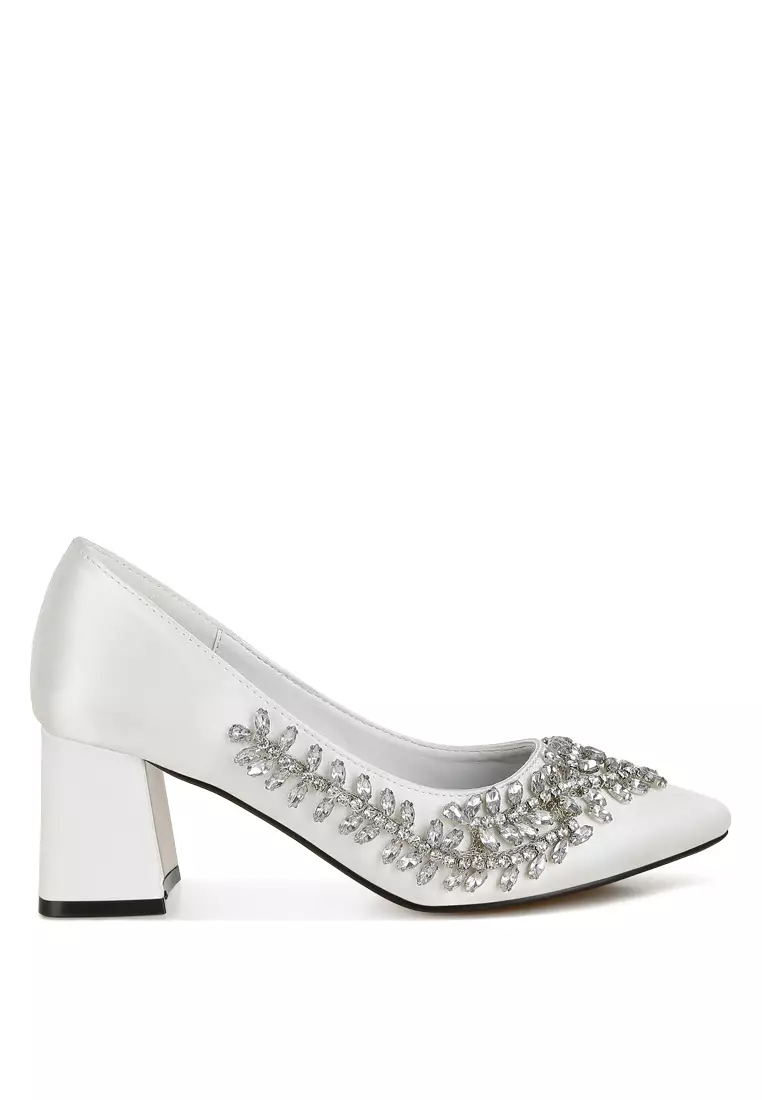 London RagSepatu Pumps Berhias Satin Berlian Imitasi Warna Puti1378479.001033859.00
