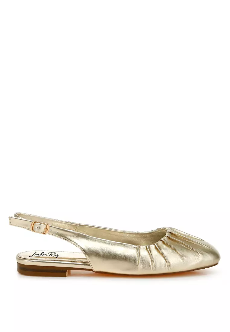 London RagSepatu Slingback Datar Ujung Persegi Metalik Warna Emas931859.00792089.00