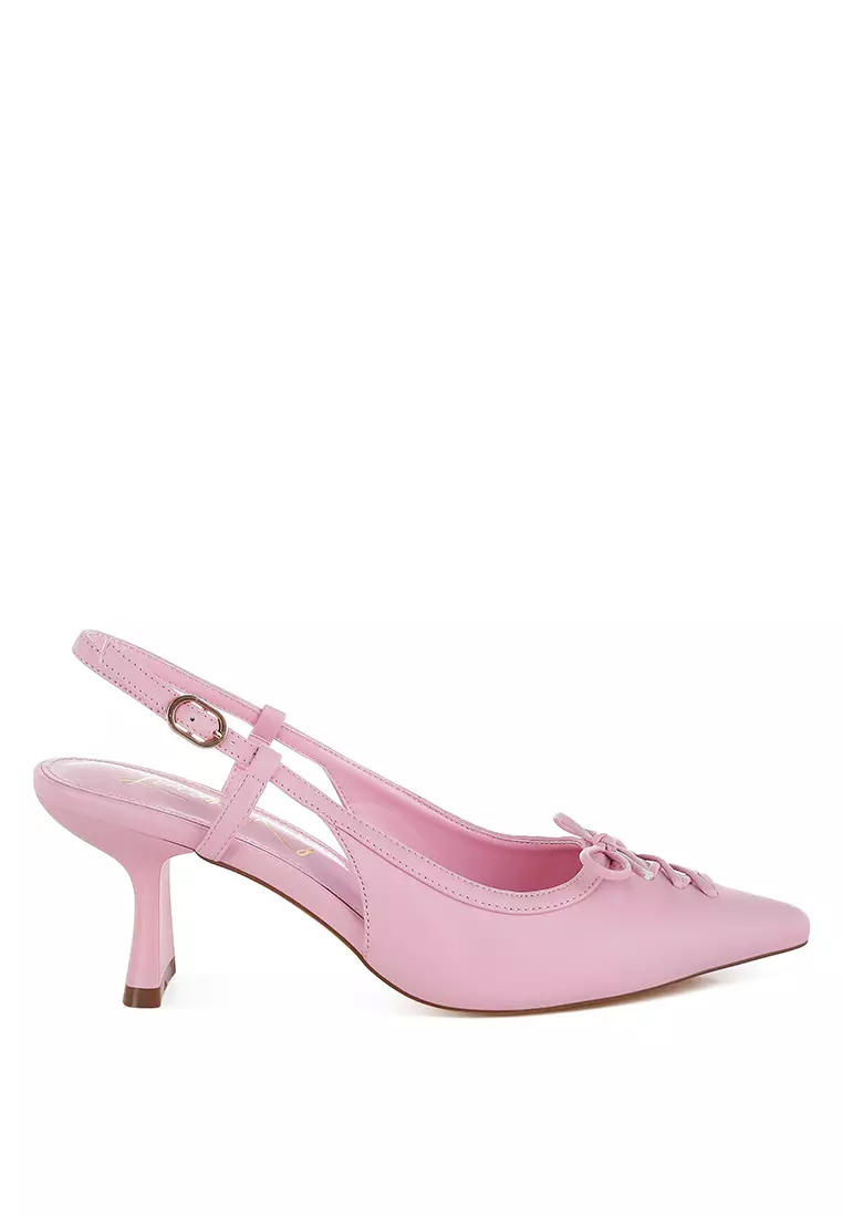 Sepatu Slingback Runcing dengan Tumit Kucing dalam Warna Pink