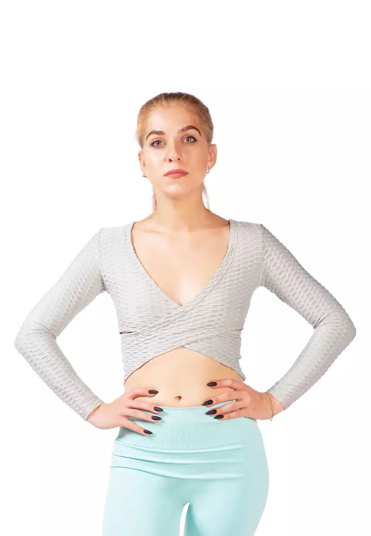 V-Neck Wrap Yoga Crop Top dalam Warna Abu-abu