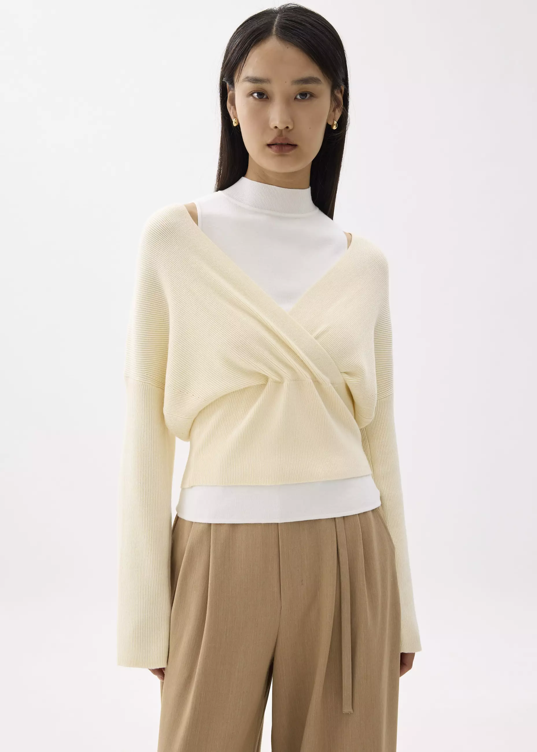 Atasan Wanita - Emiko Relaxed Knit V-neck Wrap Top