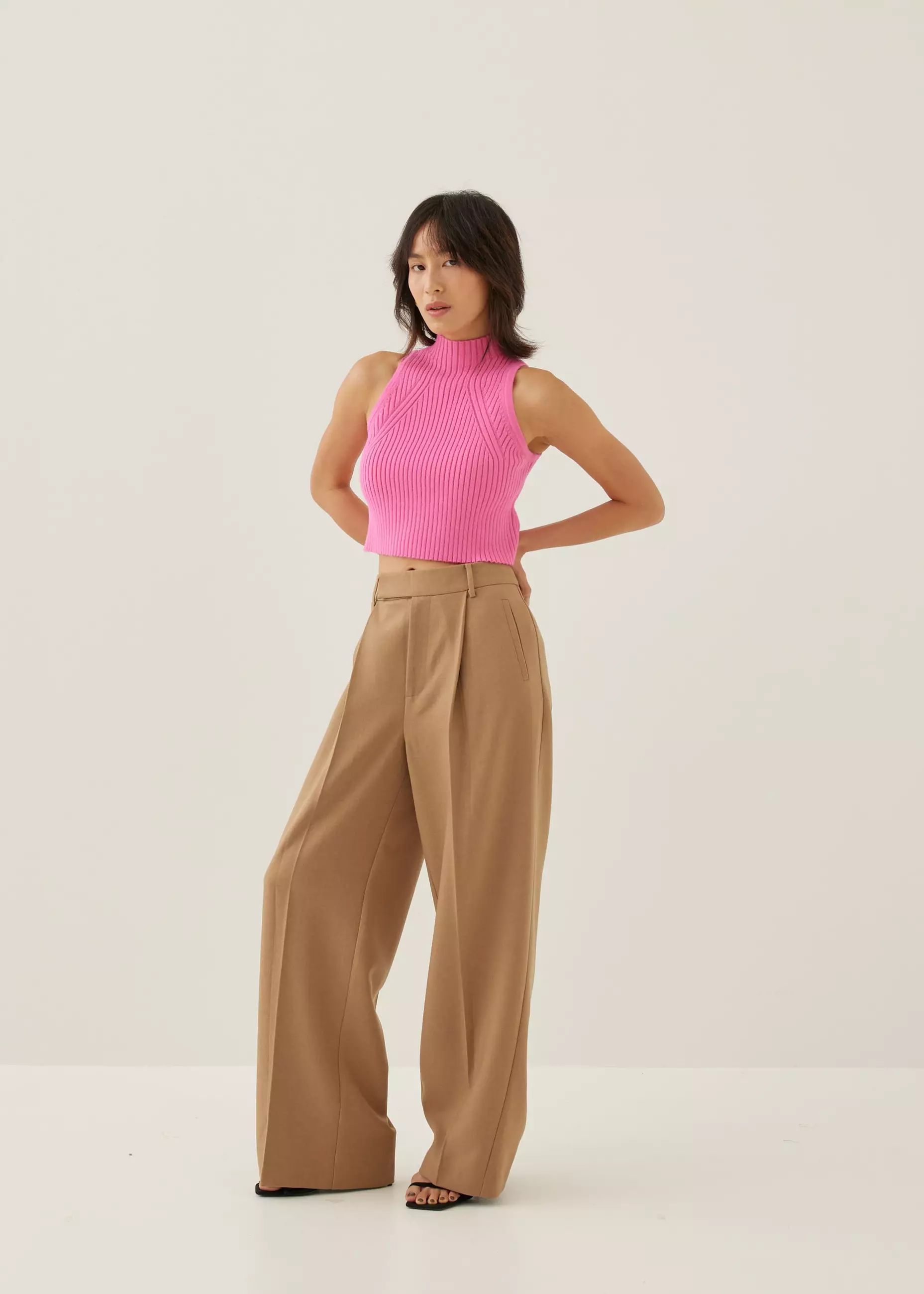 Atasan Wanita - Knit Turtleneck Crop Tank Top