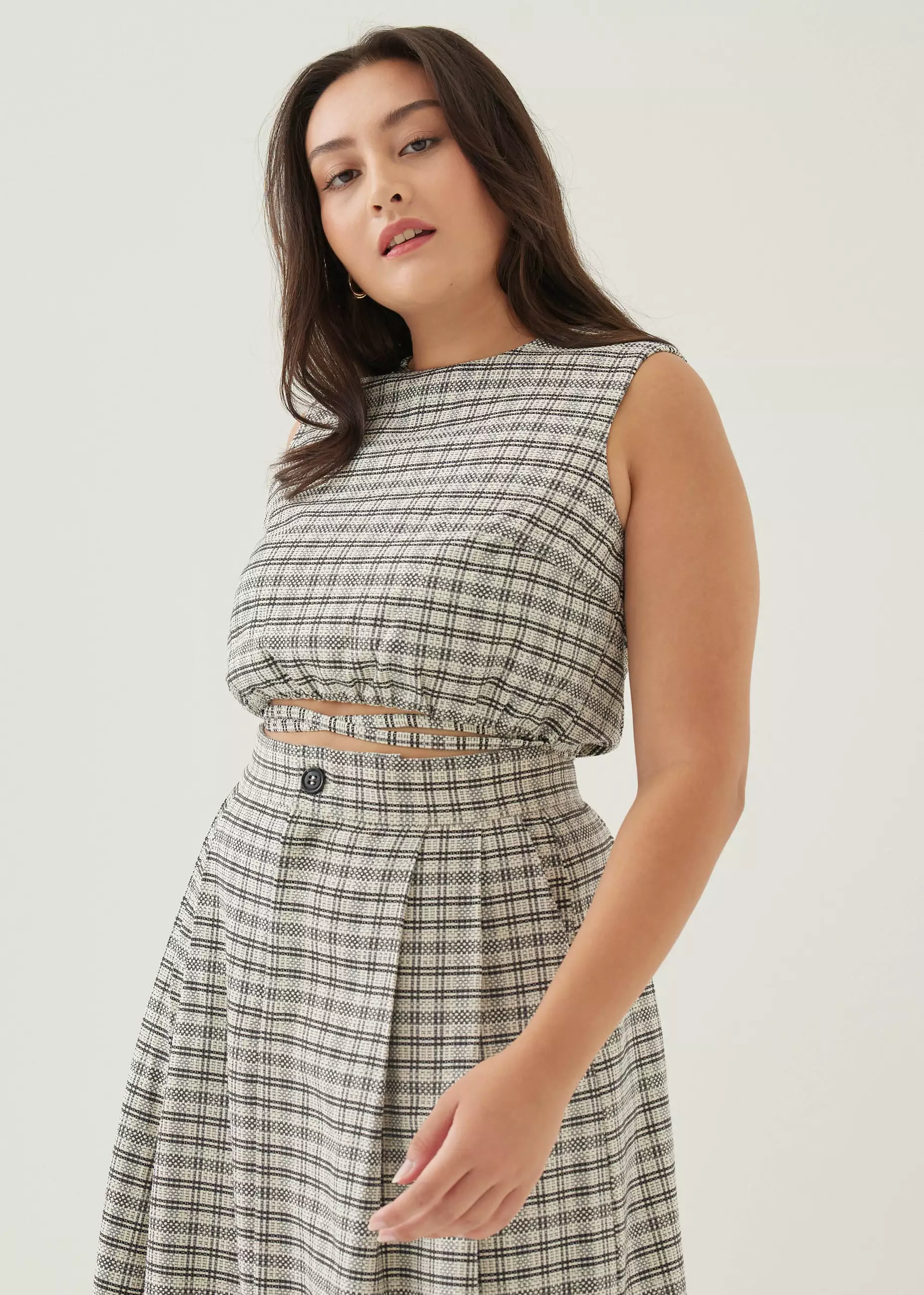 Atasan Wanita - Larson Textured Gingham Crop Top