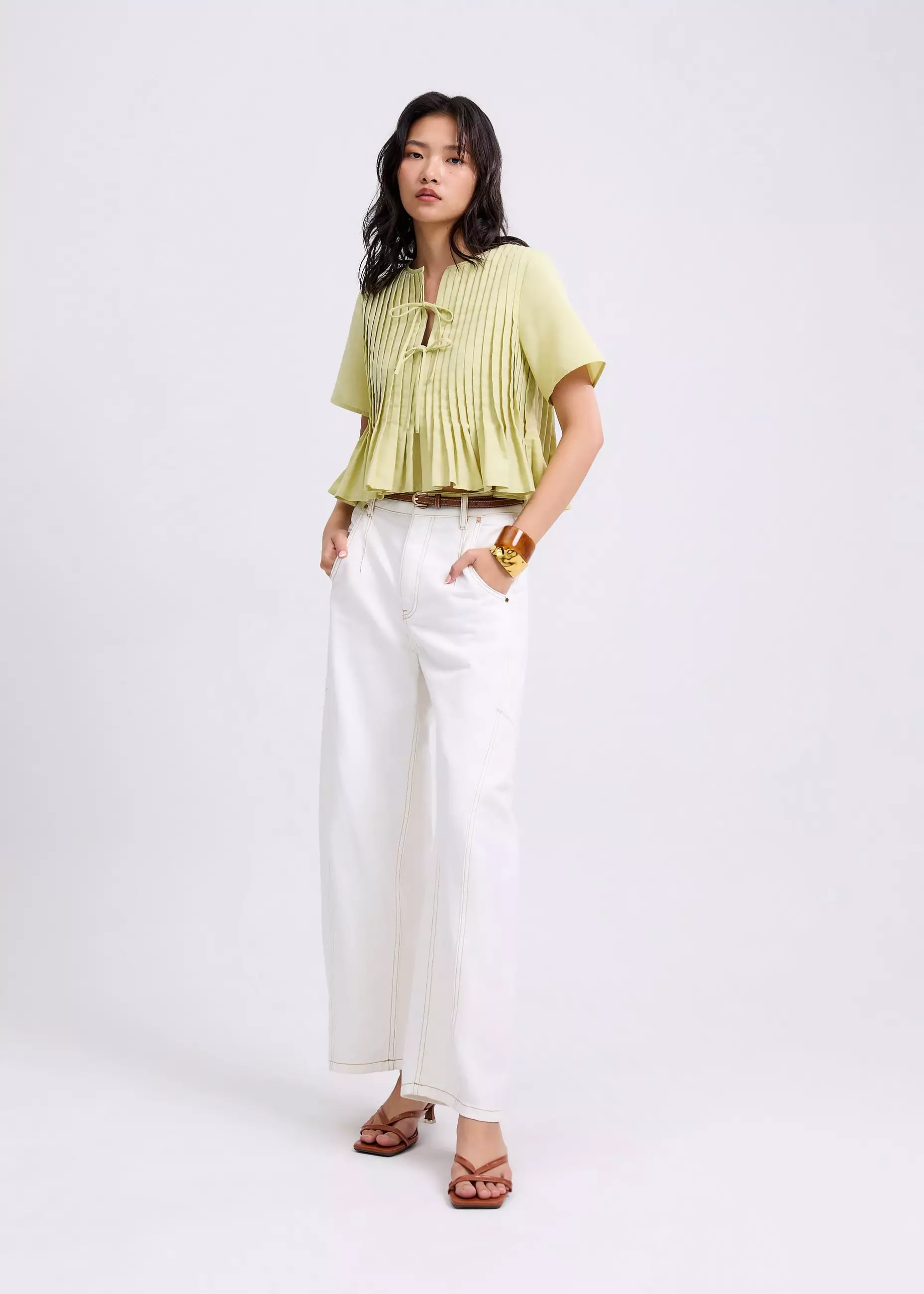 Atasan Wanita - Oxford Pintuck Notched Peplum Top
