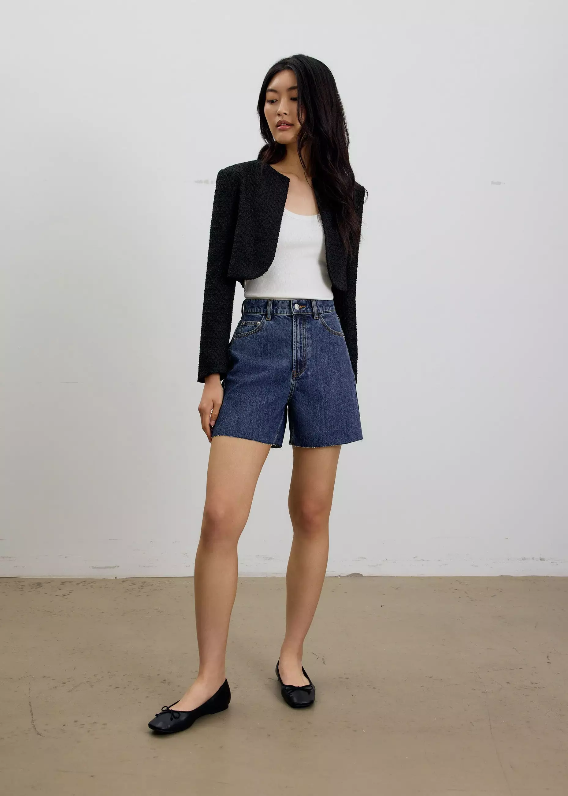 Celana Pendek Wanita - Sana High Waist Fray Denim Shorts