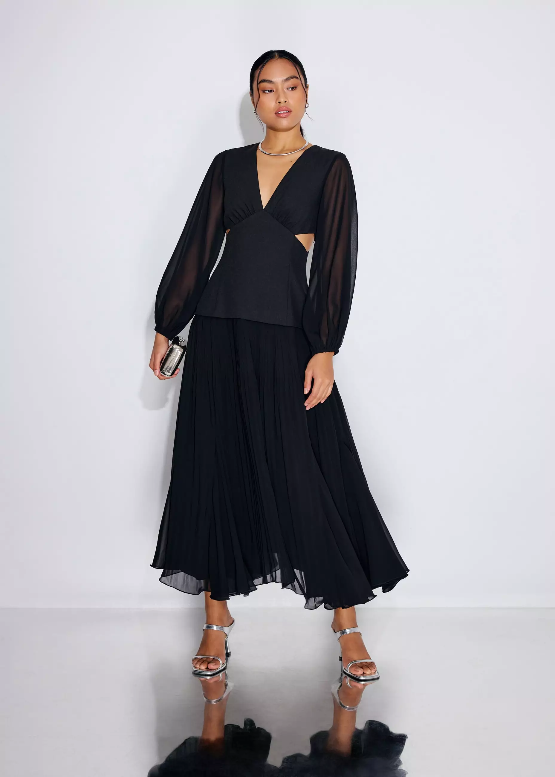 Dress Wanita - BraFree by LB Cut Out Georgette V-neck Puff Sleeve Fit & Flare Maxi Dress