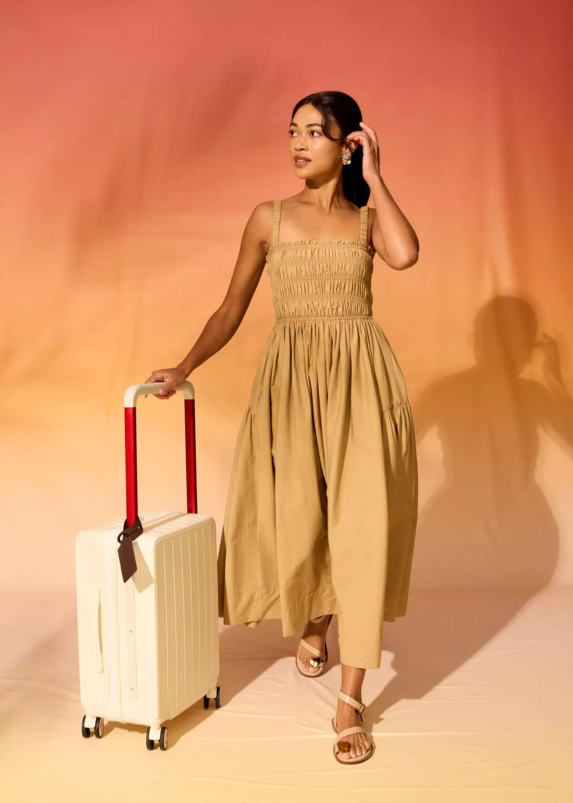 Dress Wanita - Cotton Smocked Fit & Flare Maxi Dress