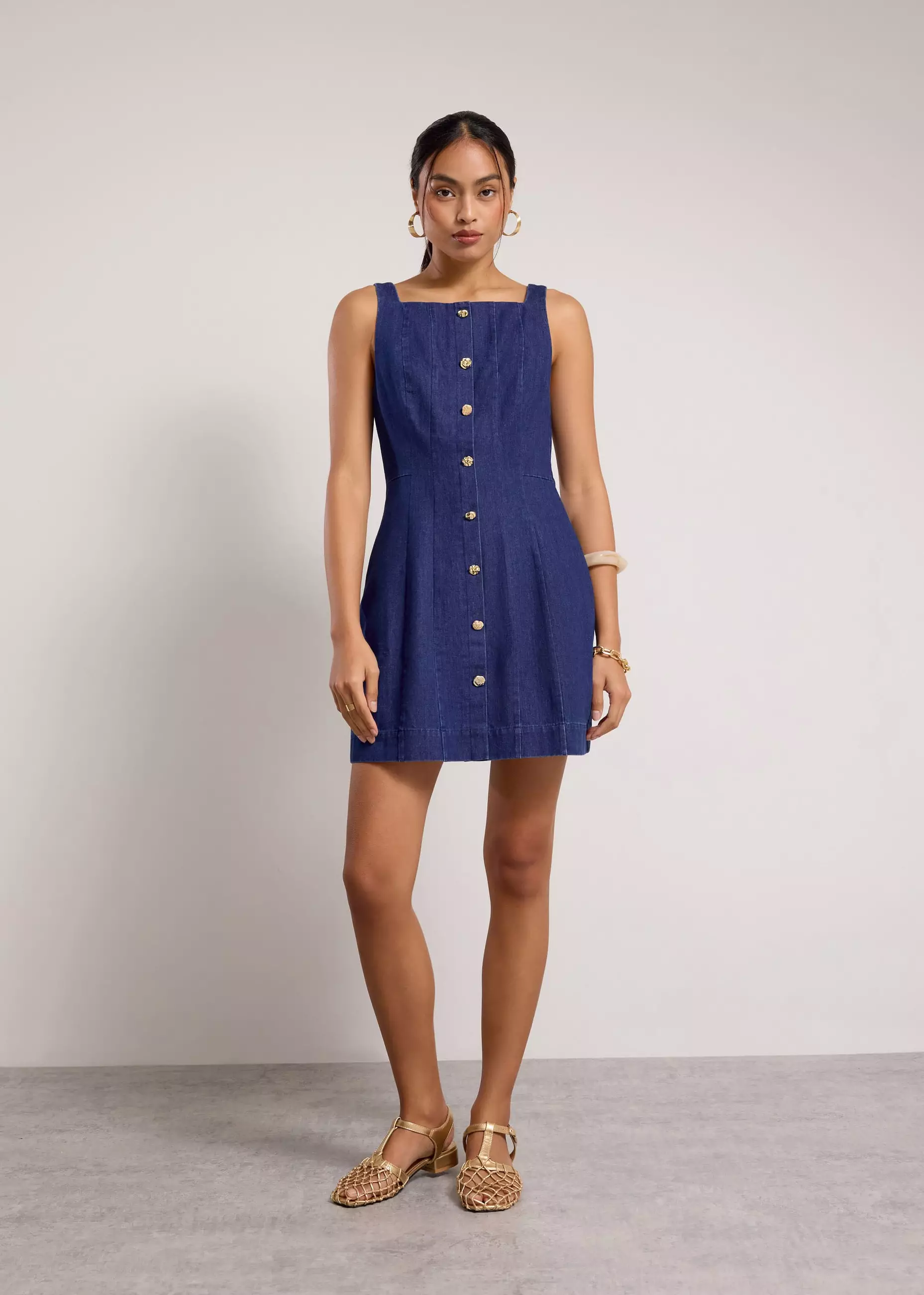 Dress Wanita - Denim Panelled A-Line Mini Dress