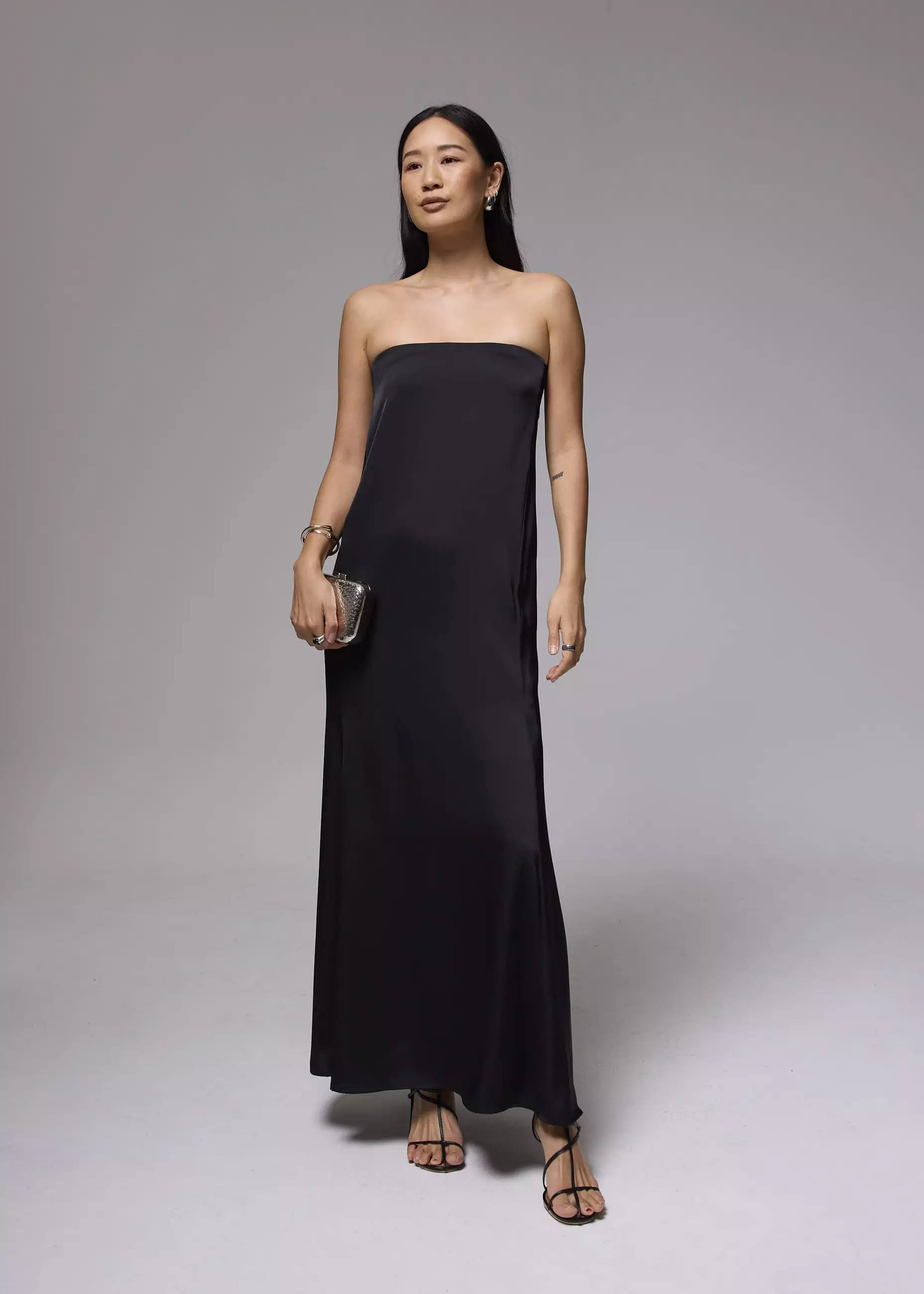 Dress Wanita - Padded Satin Tube Bias Cut Maxi Dress