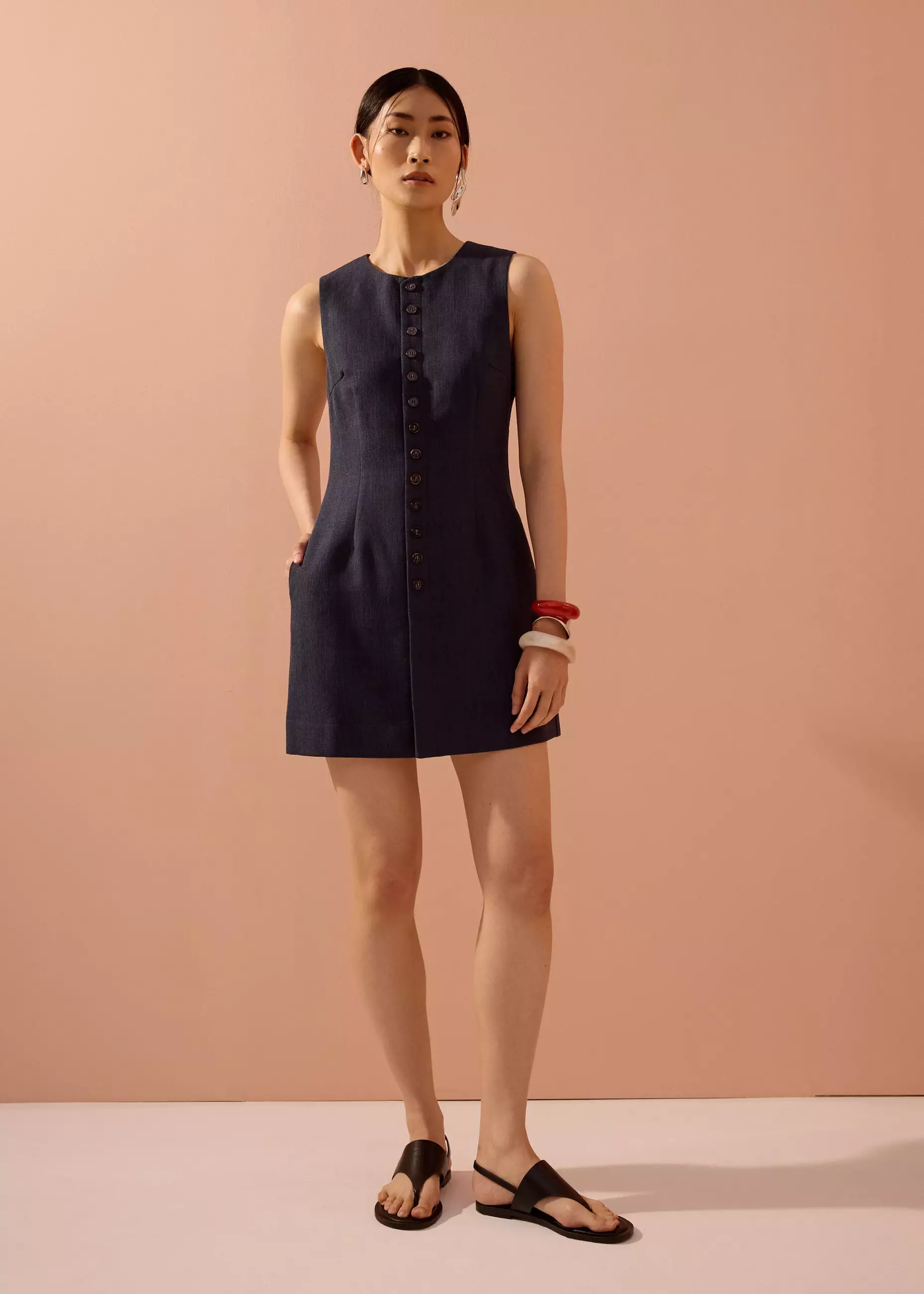 Dress Wanita - Rani Textured Button Down Mini Dress