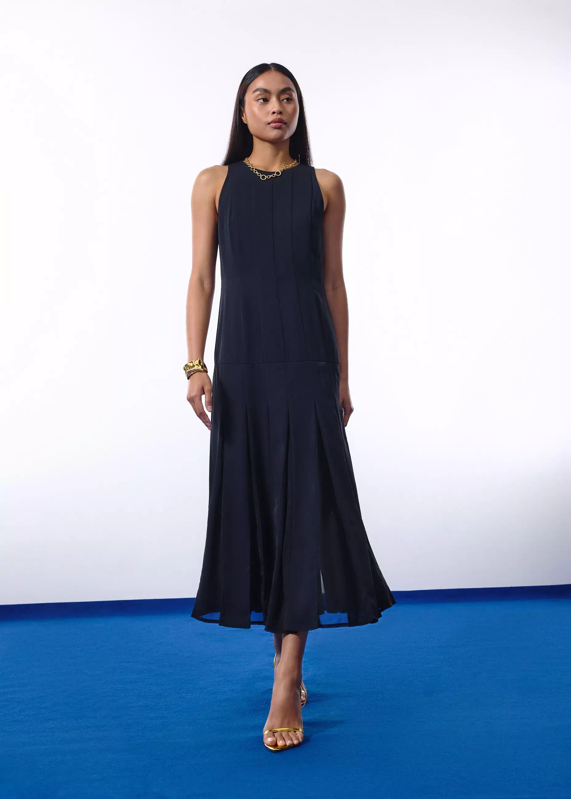 Dress Wanita - Round Neck Kick Flare Midaxi Dress