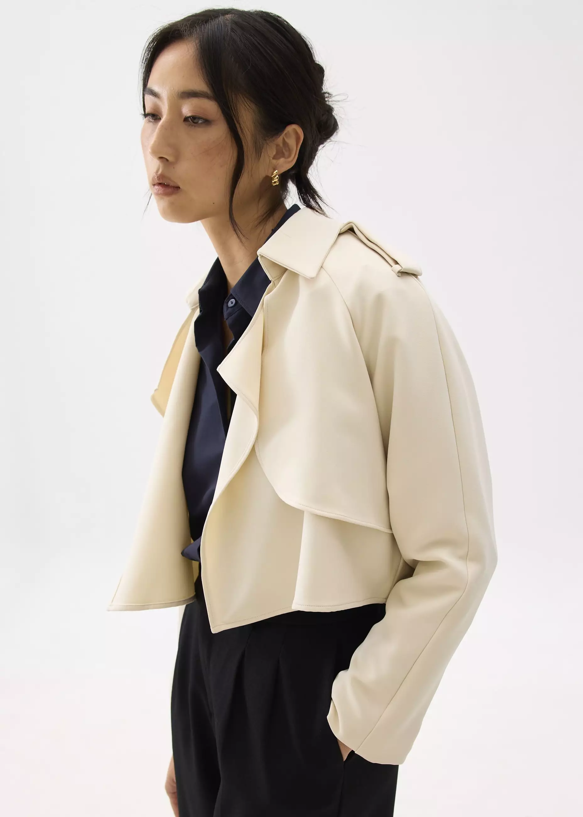 Jaket Wanita - RuchedReady™ Collared Boxy Crop Jacket