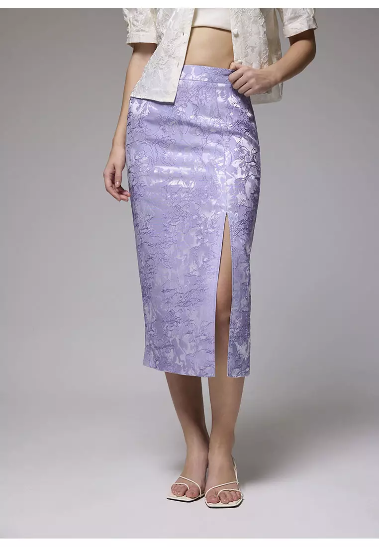 Rok Wanita - Brocade High Waist Column Midi Skirt