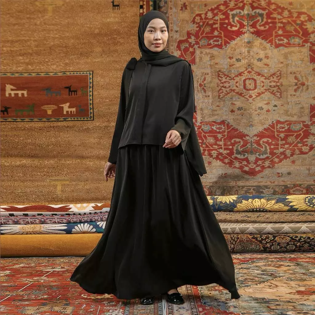 Hanaya Tunik Blouse Set Black
