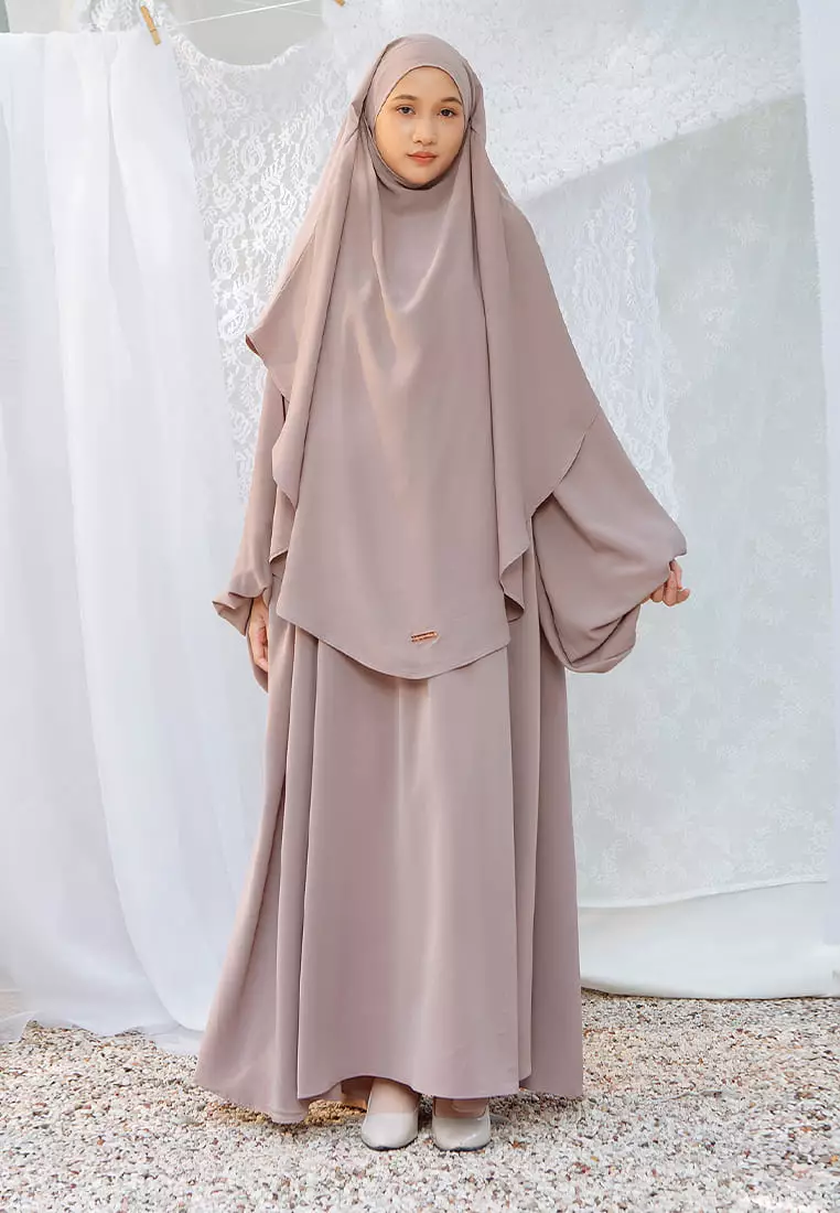 Mida Abaya Khimar Set Grey Cream (Lozy x Hamidah)