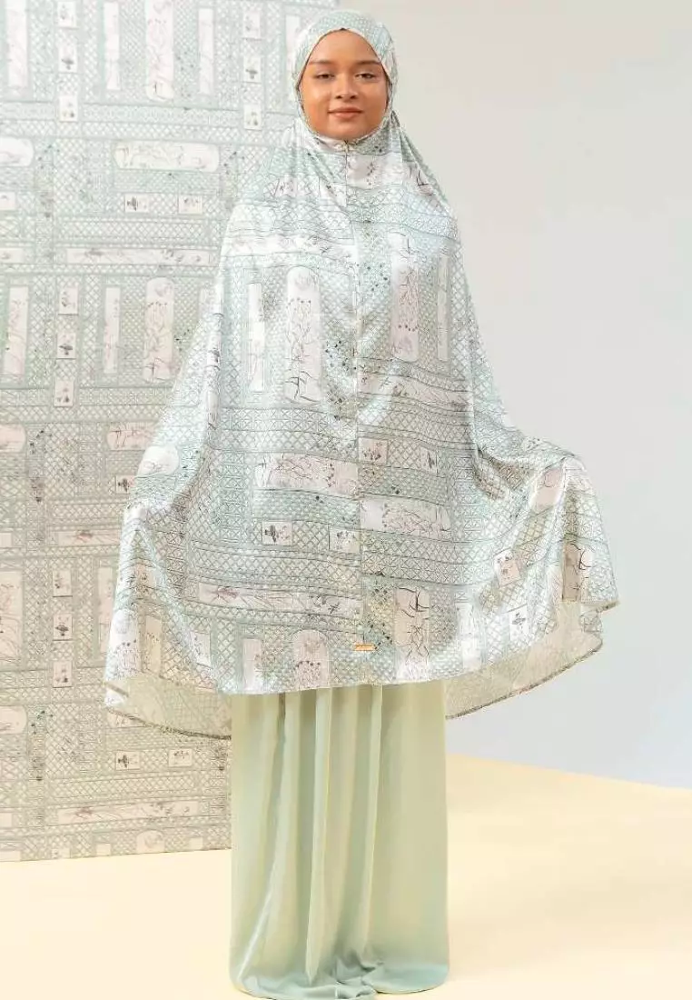 Rawda Prayer Set Frosted Sage (Mukena Set Pattern Bahan Silk)