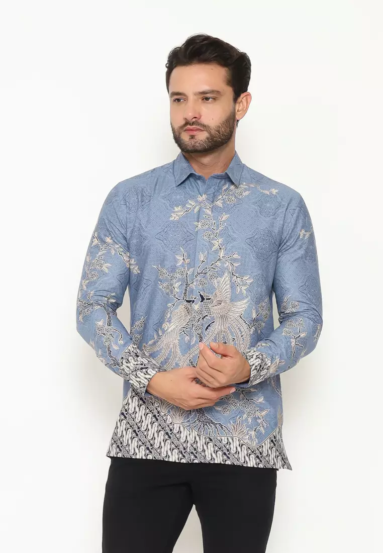 MAGINOT ASANA BLUE Batik Pria Slim Fit Lengan Panjang