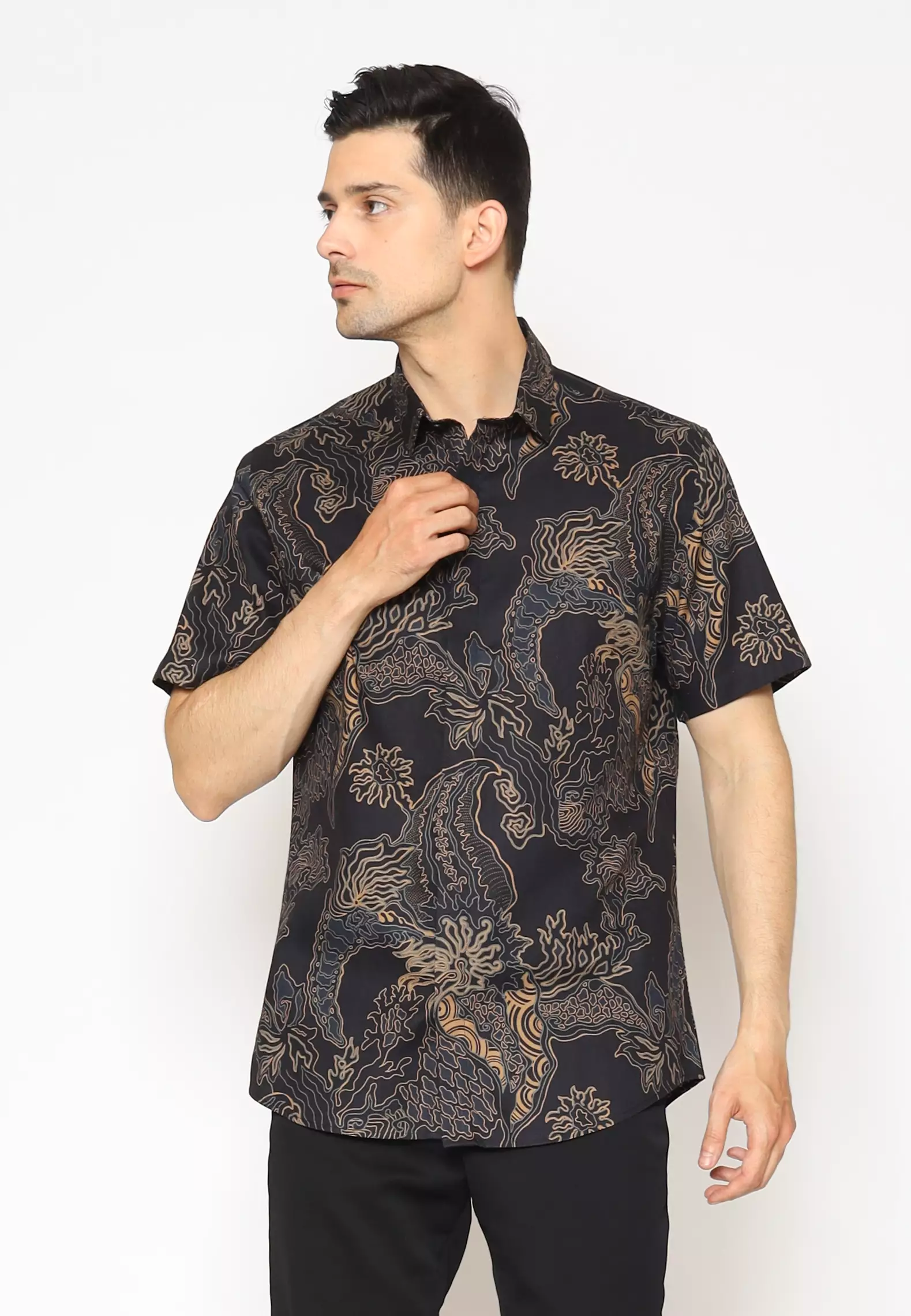 MAGINOT JEVAZ BLACK Batik Slim Fit Lengan Pendek
