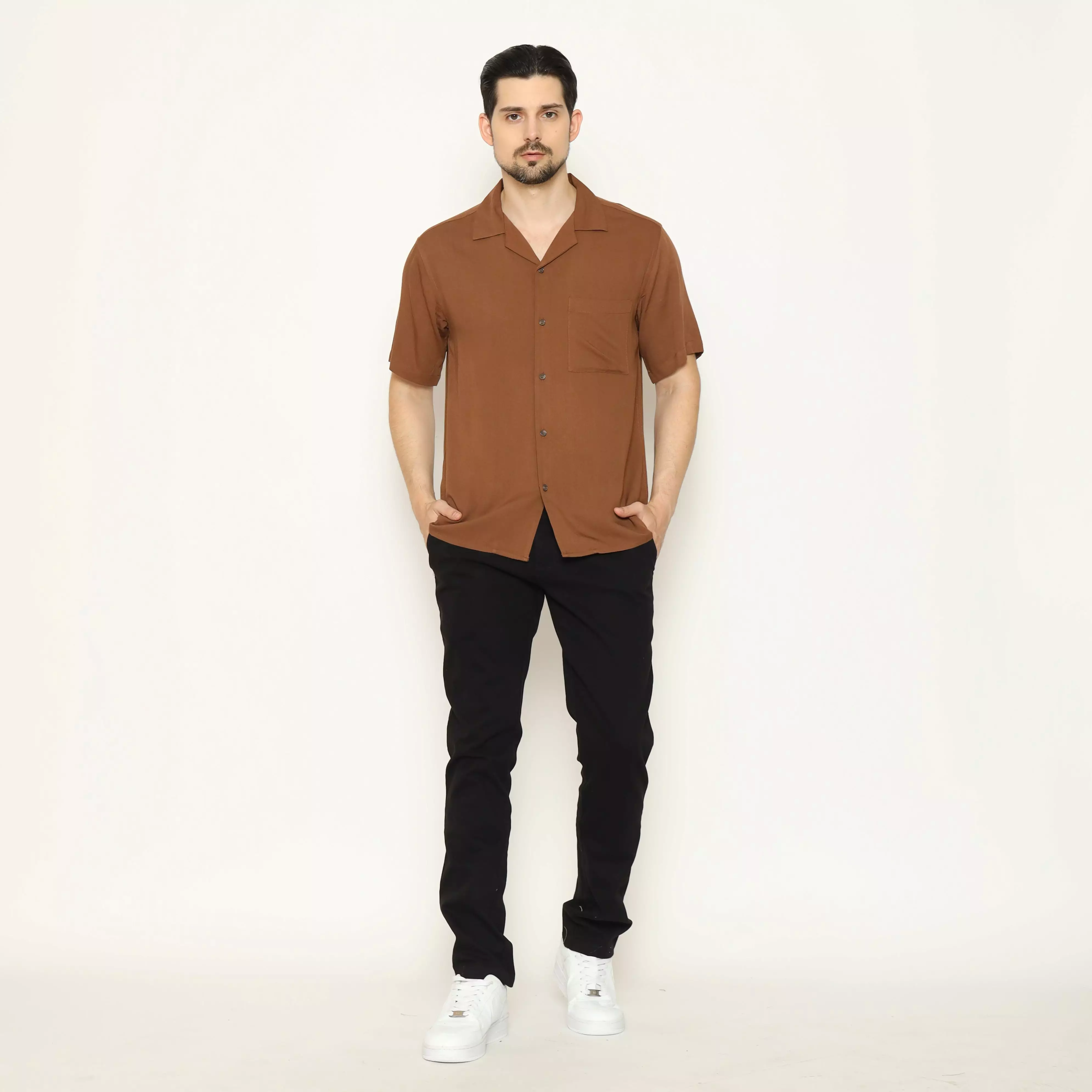 MAGINOT Kemeja Pria Basic Cuban Collar Rayon Pendek BROWN
