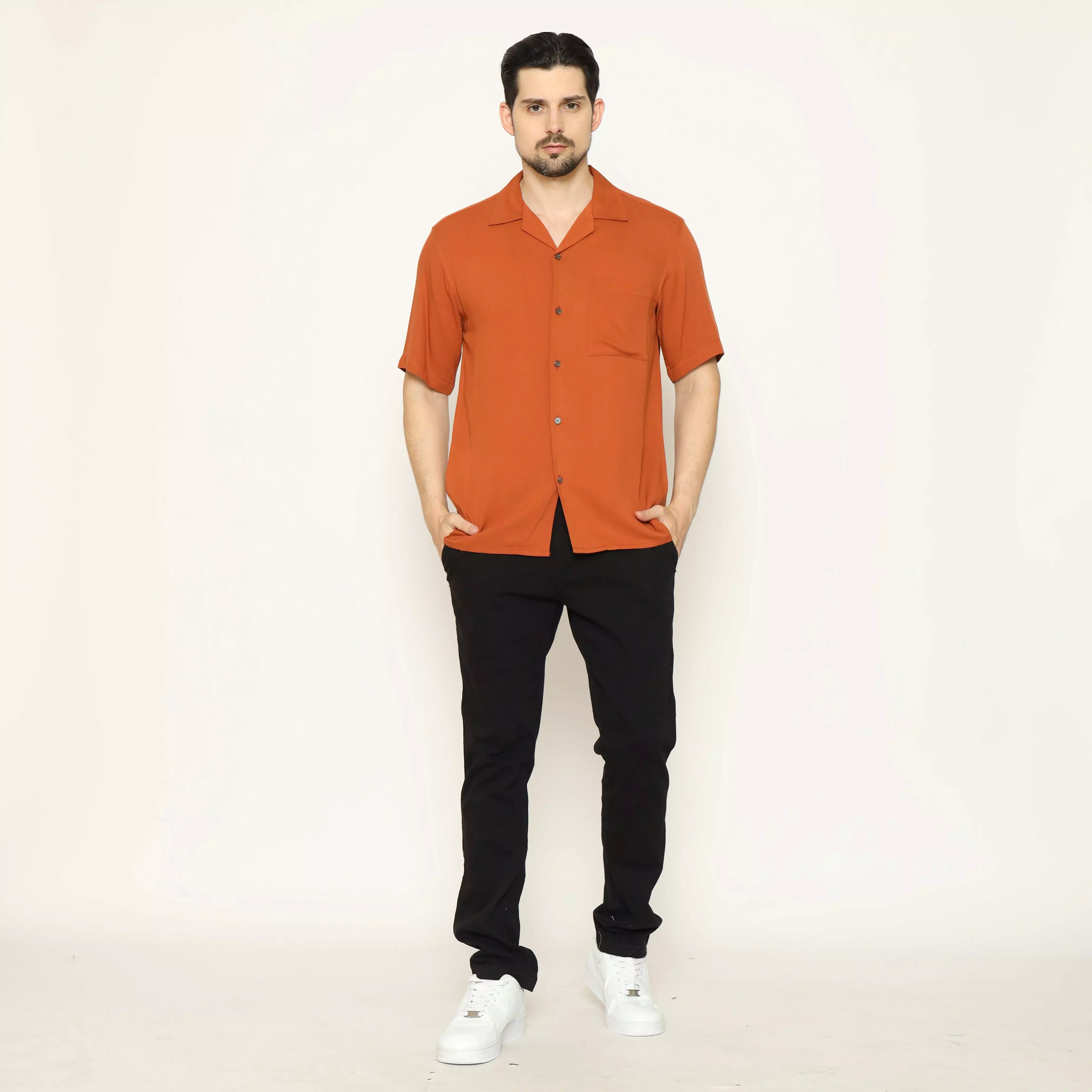 MAGINOT Kemeja Pria Basic Cuban Collar Rayon Pendek ORANGE