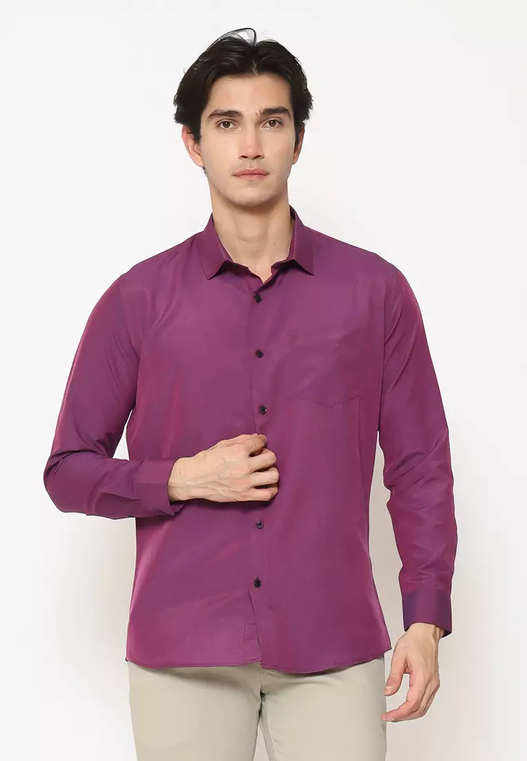 MAGINOT Kemeja Pria Basic Polos Panjang PURPLE
