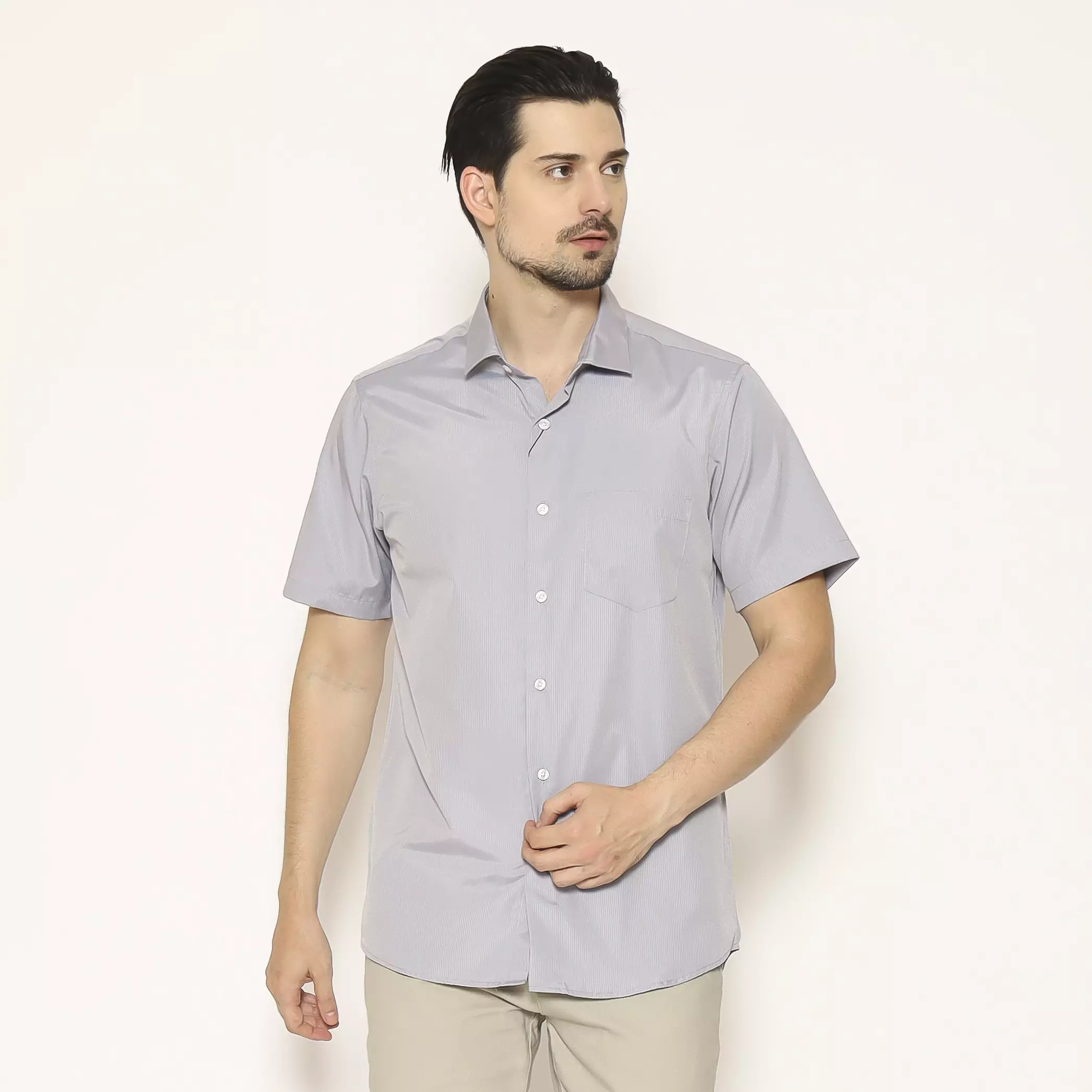 MAGINOT Kemeja Pria Basic Stripe Lengan Pendek GREY