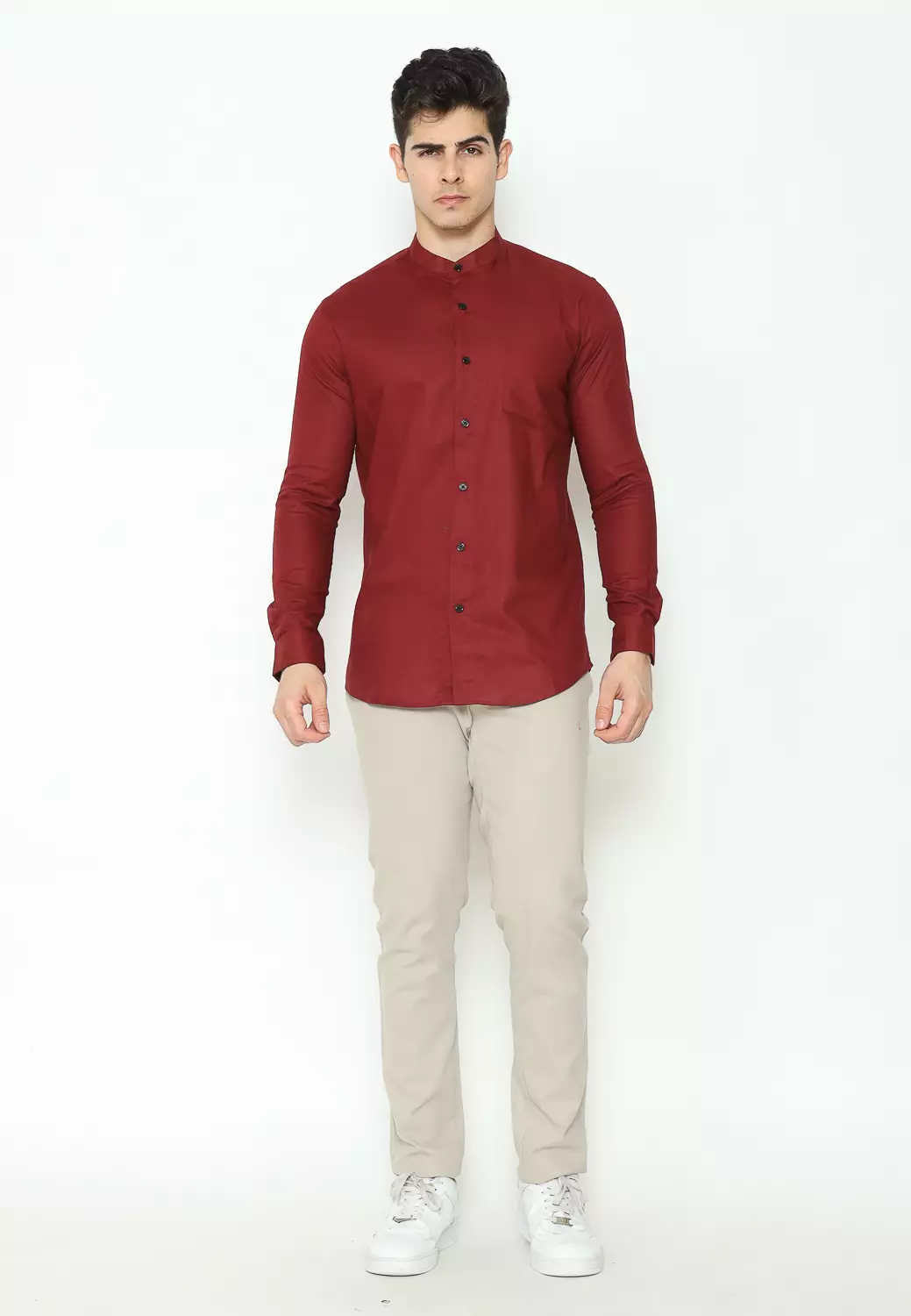 MAGINOT Kemeja Pria KOKO Basic Polos Lengan Panjang DARK MAROON
