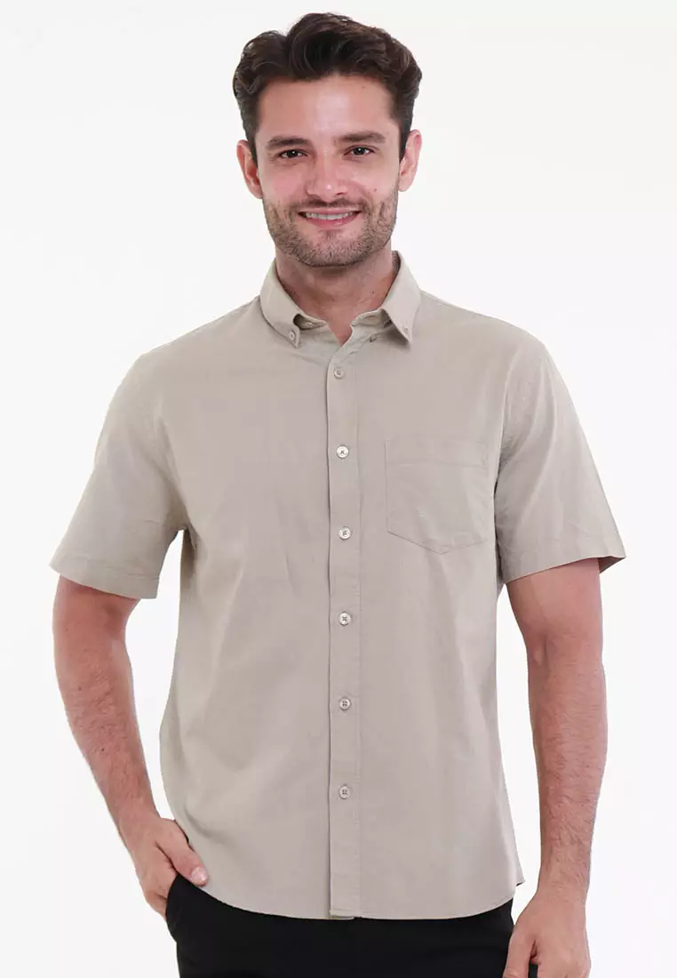 MAGINOT OXFORD 2.0 KHAKY Kemeja Casual Slim Fit Lengan Pendek