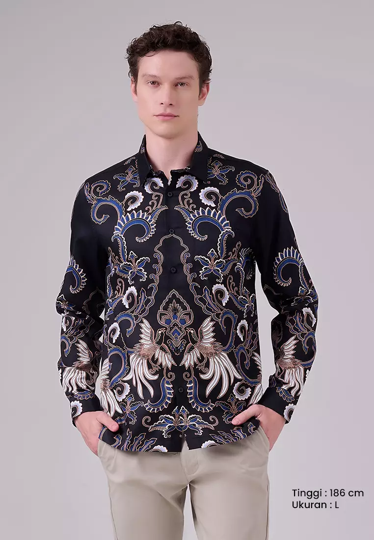 MANZONE - Kemeja Batik Lengan Panjang Pria Tirtayasa 01 Modern Fit - Black