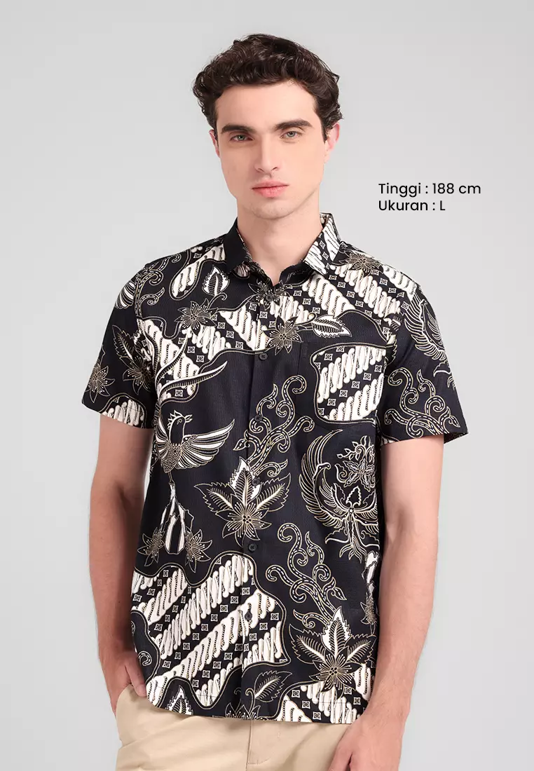 MANZONE - Kemeja Batik Lengan Pendek Pria Astagira Modern Fit - Black