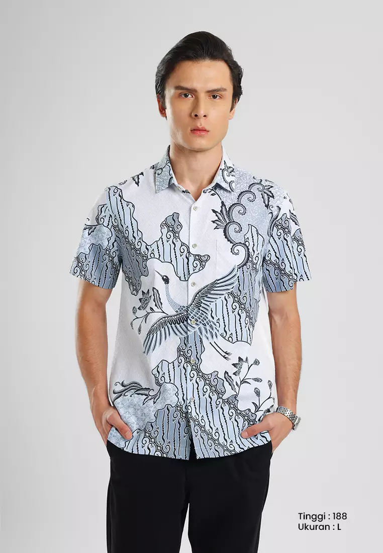 MANZONE - Kemeja Batik Lengan Pendek Pria Wanamarta Modern Fit - White Warna White