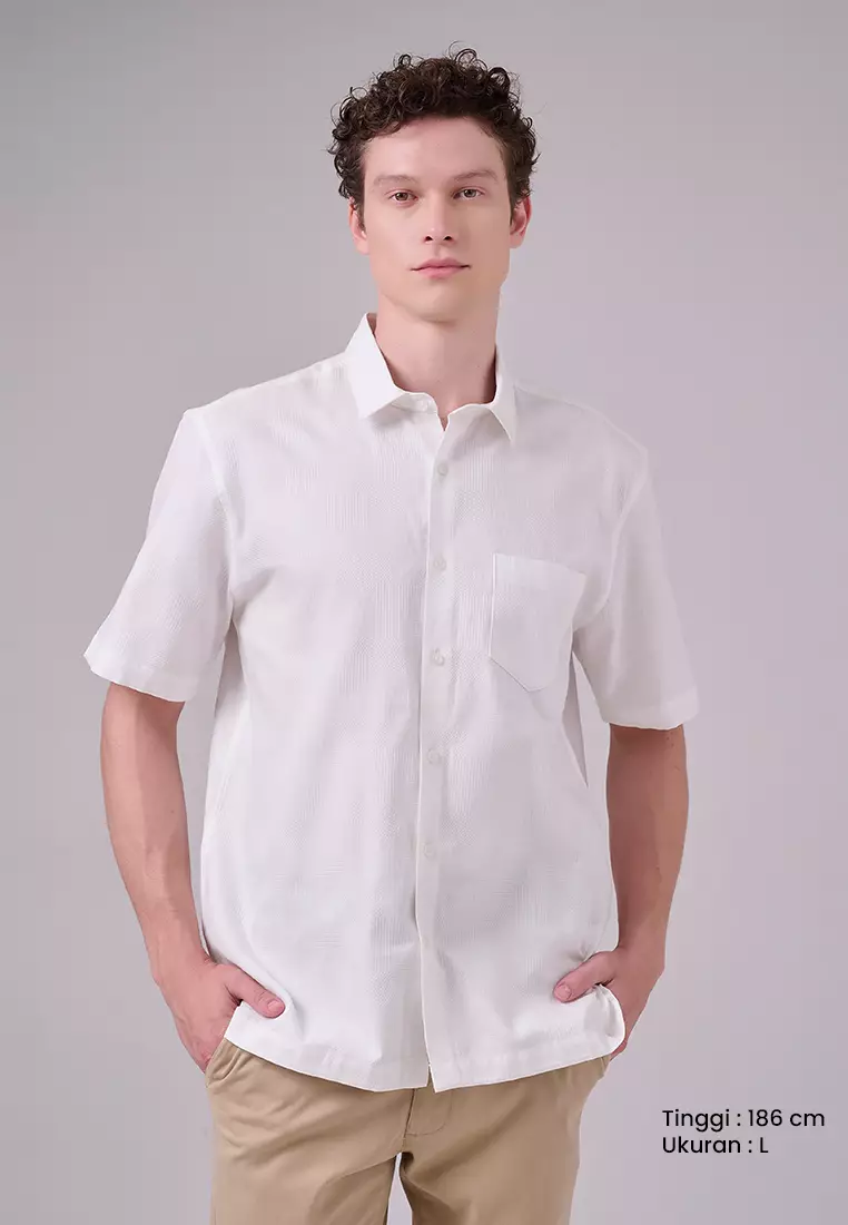 MANZONE - Kemeja Dobby Lengan Pendek Pria Janis Comfort Fit - White Warna White