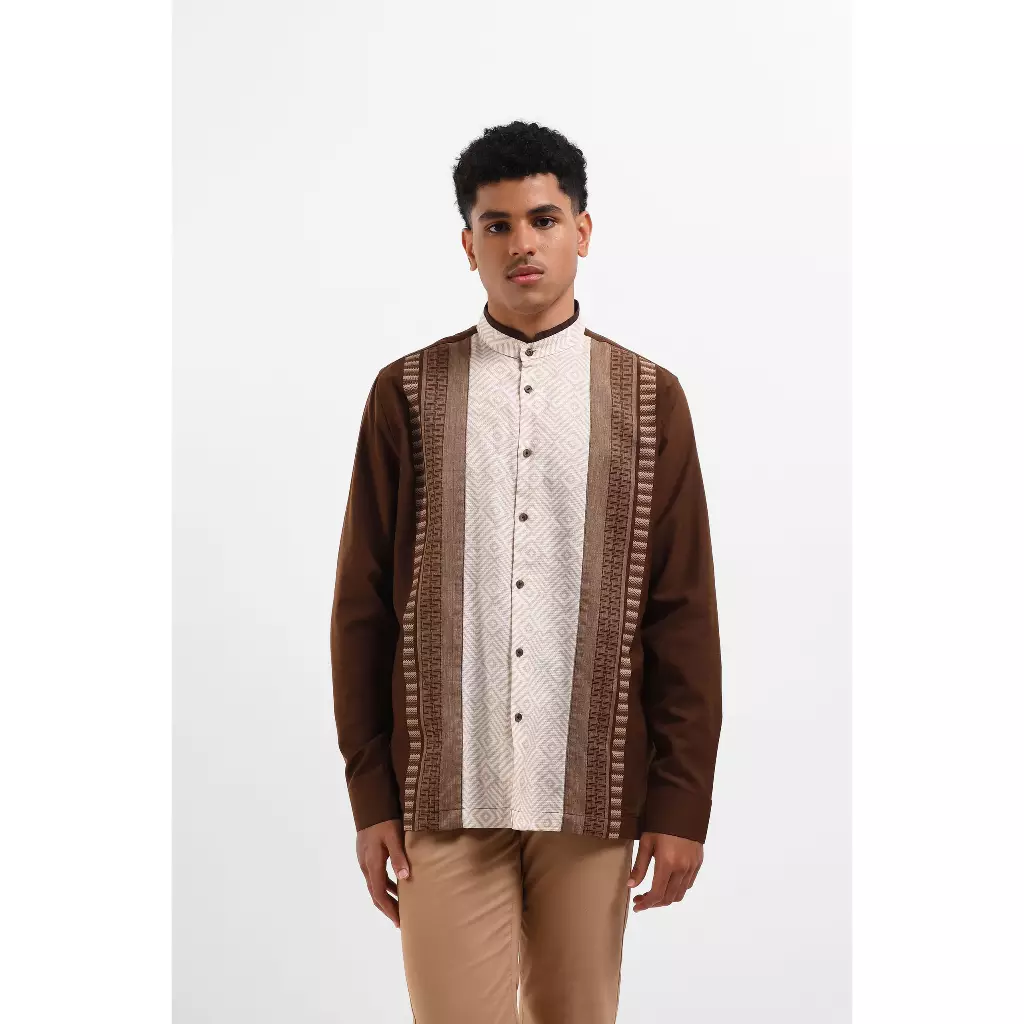 MANZONE - Kemeja Koko Lengan Panjang Pria Maheer Modern Fit - Brown