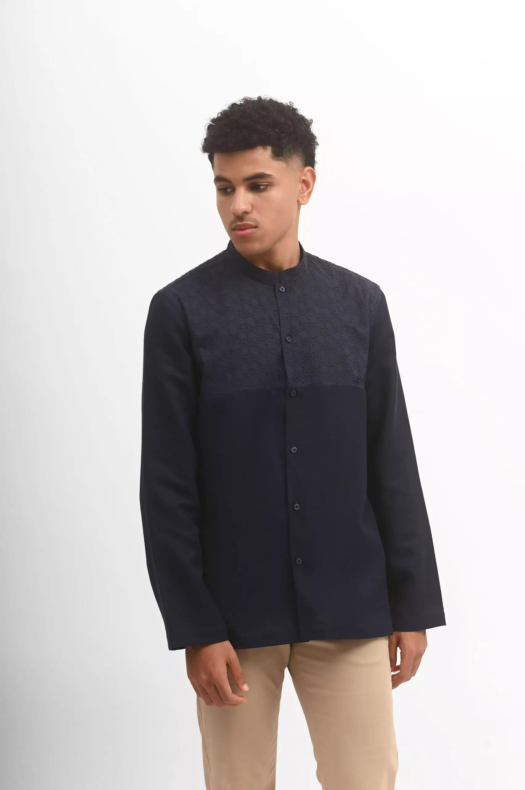 MANZONE Kemeja Koko Lengan Panjang Pria ZULFAN - NAVY