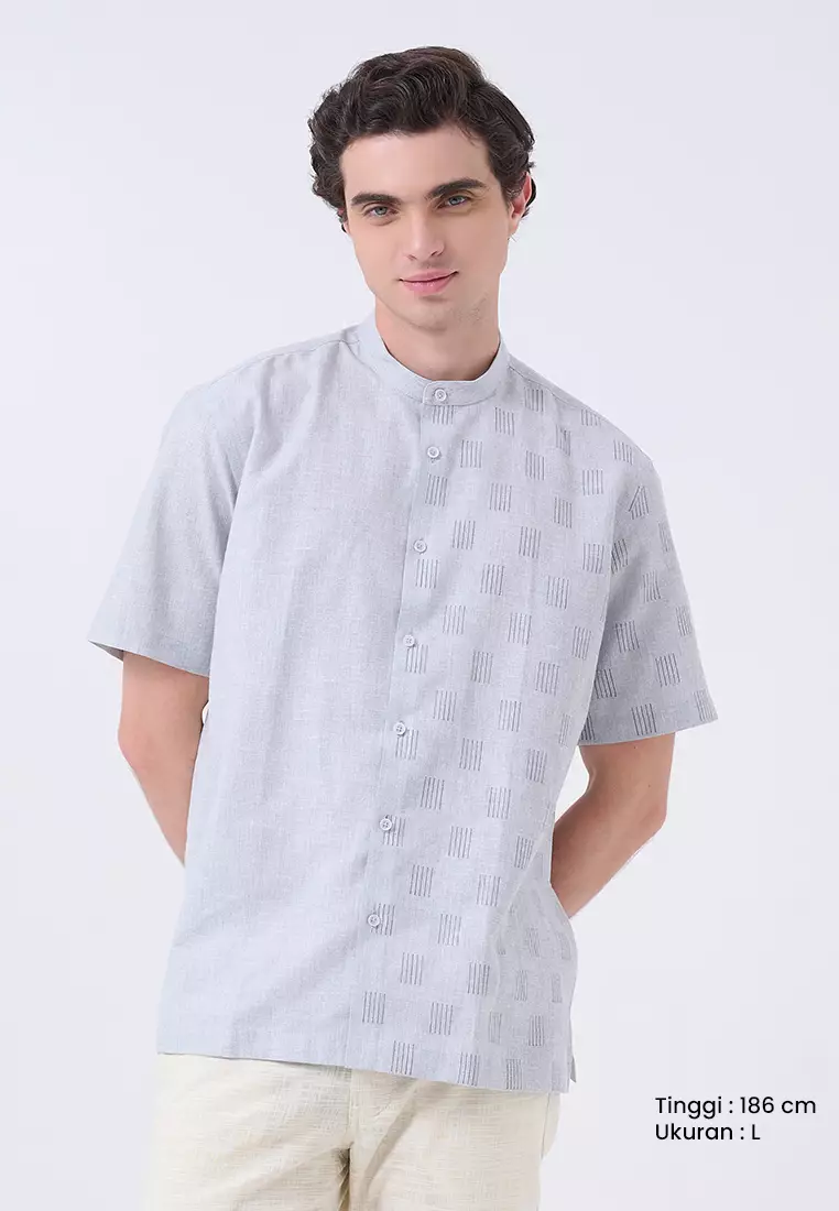 MANZONE - Kemeja Koko Lengan Pendek Pria Alhamra Comfort Fit - Grey Warna Grey