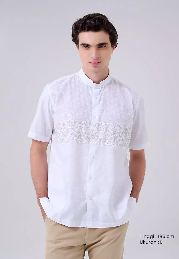 MANZONE - Kemeja Koko Lengan Pendek Pria Saleh Comfort Fit - White Warna White