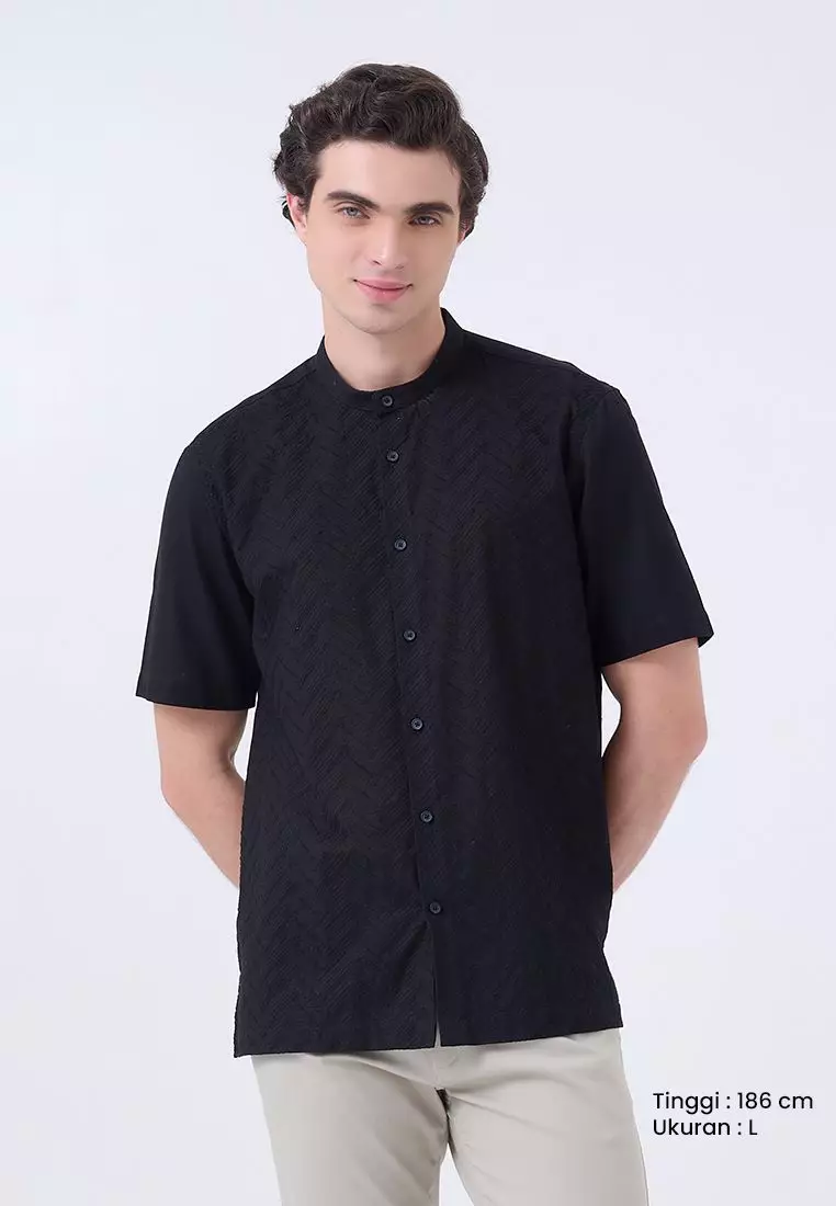 MANZONE - Kemeja Koko Lengan Pendek Pria Zulkar Comfort Fit - Black Warna Black