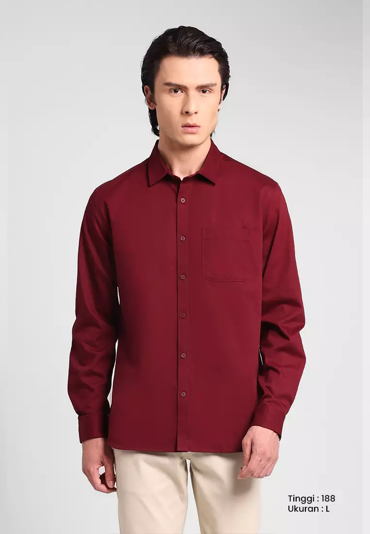 MANZONE - Kemeja Lengan Panjang Pria Maveric 06 Comfort Fit - Maroon Warna Maroon