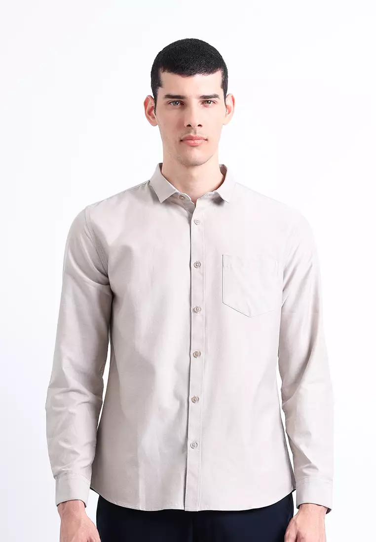 Manzone Kemeja Lengan Panjang Pria Slim Fit Foxy - Beige