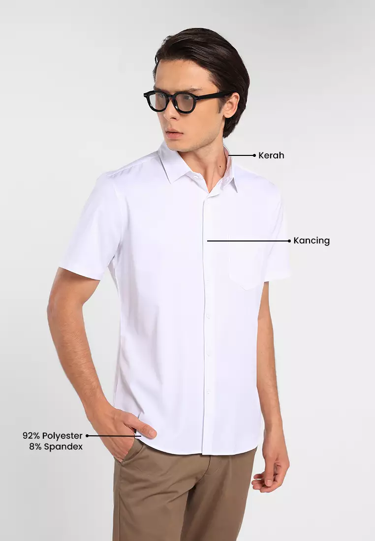 MANZONE - Kemeja Lengan Pendek Pria Mino 02 Slim Fit - White Warna White