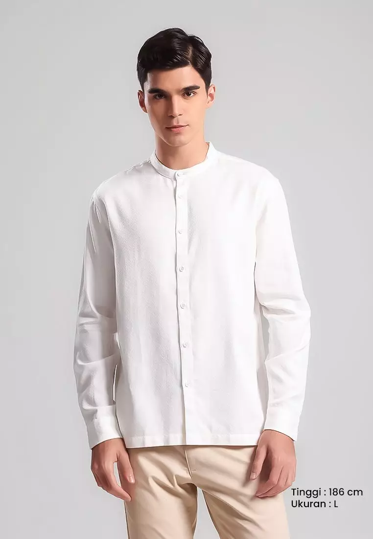 MANZONE - Kemeja Shanghai Lengan Panjang Pria Raafat Comfort Fit - White Warna White