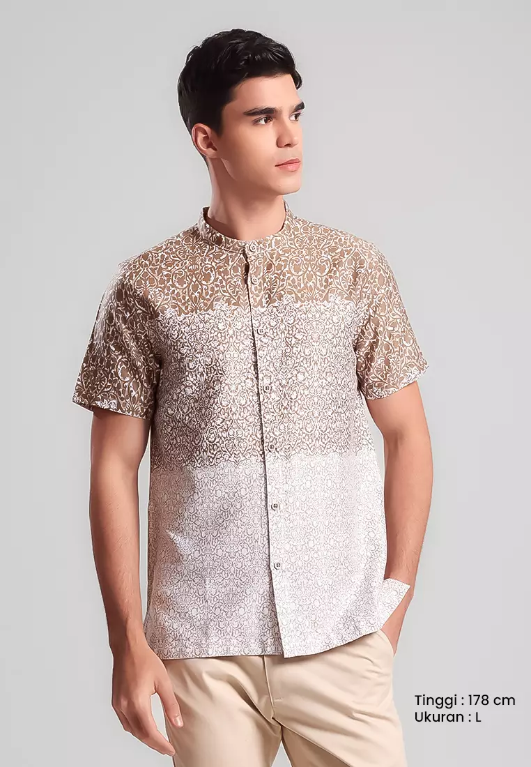 MANZONE - Kemeja Shanghai Lengan Pendek Pria Prananda Modern Fit - Brown Warna Brown